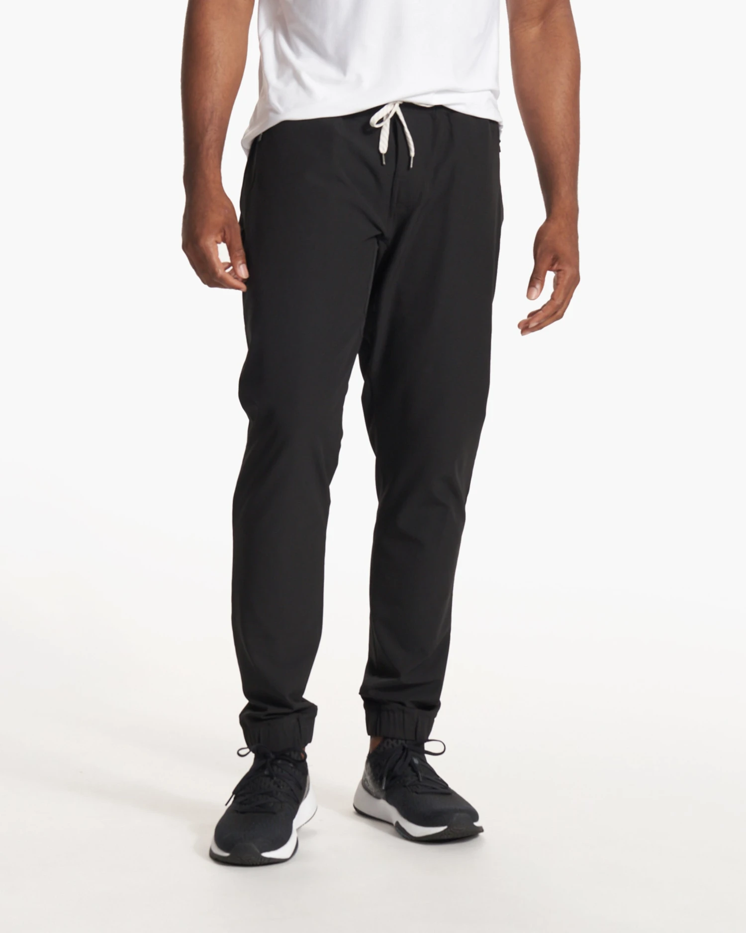 Our most technical jogger with the comfort and wearability of everyday pants. Abrasion resistant, technical 4-way stretch woven fabric for structure and durability, with back and side zip pockets, a signature drawcord and elastic ankle cuffs to tie everything together.